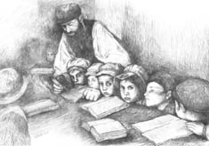 Several drawings depict secret Torah learning in the Warsaw Ghetto. Despite the brutal destruction of these ancient communities, our generation is testimony to the fact that we have risen again from the ashes, stronger and more determined to succeed in our task of being “a light unto the nations”.